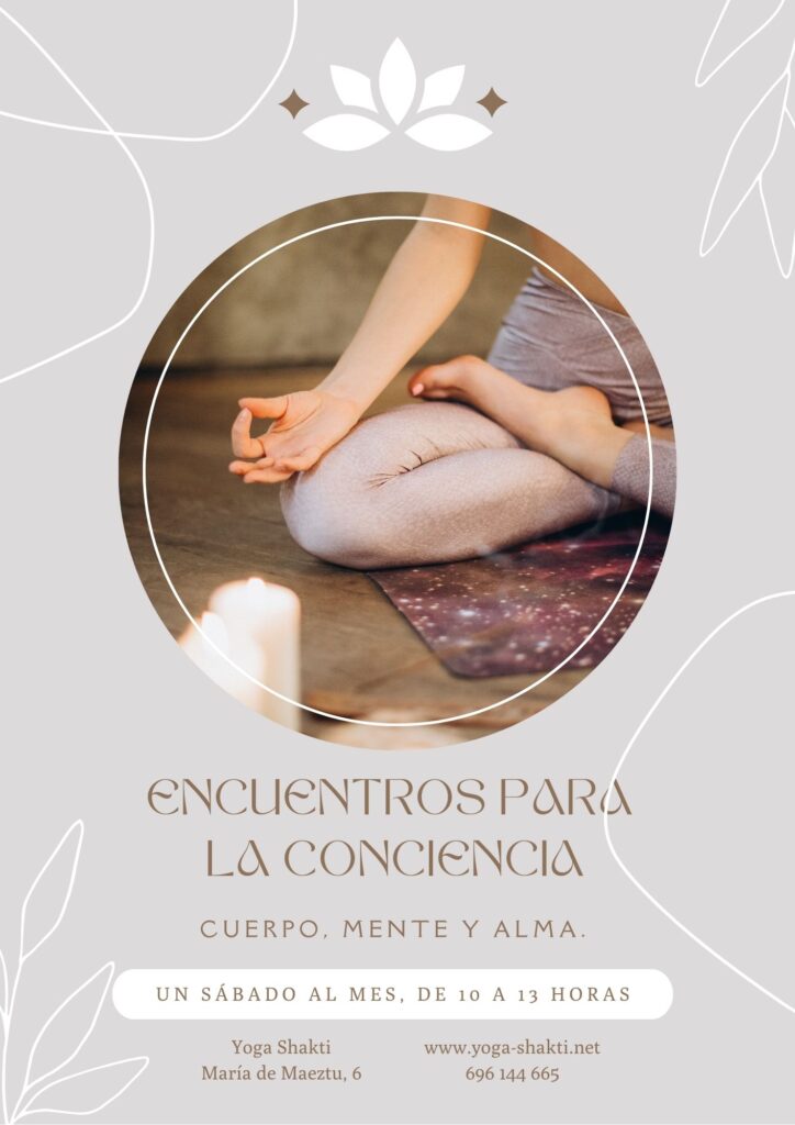 Tras la gran acogida durante el curso pasado, vamos a continuar con los «Encuentros para la Conciencia» que haremos un sábado al mes, para profundizar en la enseñanza del Yoga y en las raíces de su historia y de su tradición, con temas como hinduismo, textos védicos, sistemas filosóficos, sacralidad, los diferentes senderos del Yoga, etc. También con una parte práctica que nos vaya introduciendo en espacios internos de quietud para facilitar que esa enseñanza se vaya integrando en nosotros y así poder adentrarnos en la plenitud de nuestra verdadera Esencia.